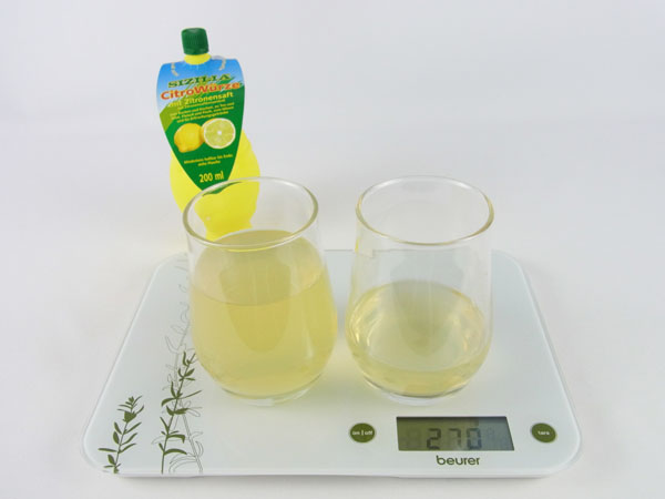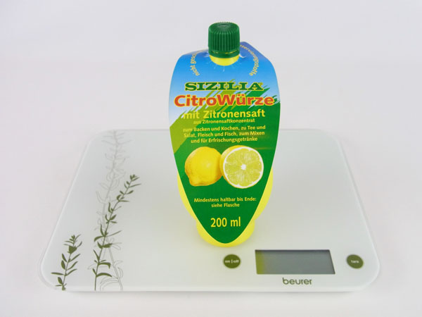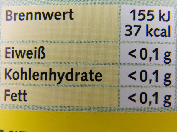 Kalorien: 1 Flasche = 200 g = 310 kcal 1 Eßlöffel = 15 g = 23 kcal 1 Teelöffel = 5 g = 8 kcal Wieviel sind 100 kcal: 100 kcal = 270 g = 1,4 Glas